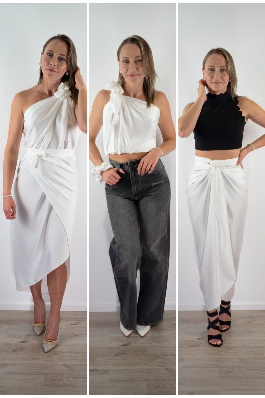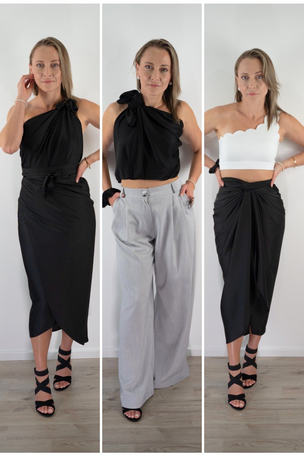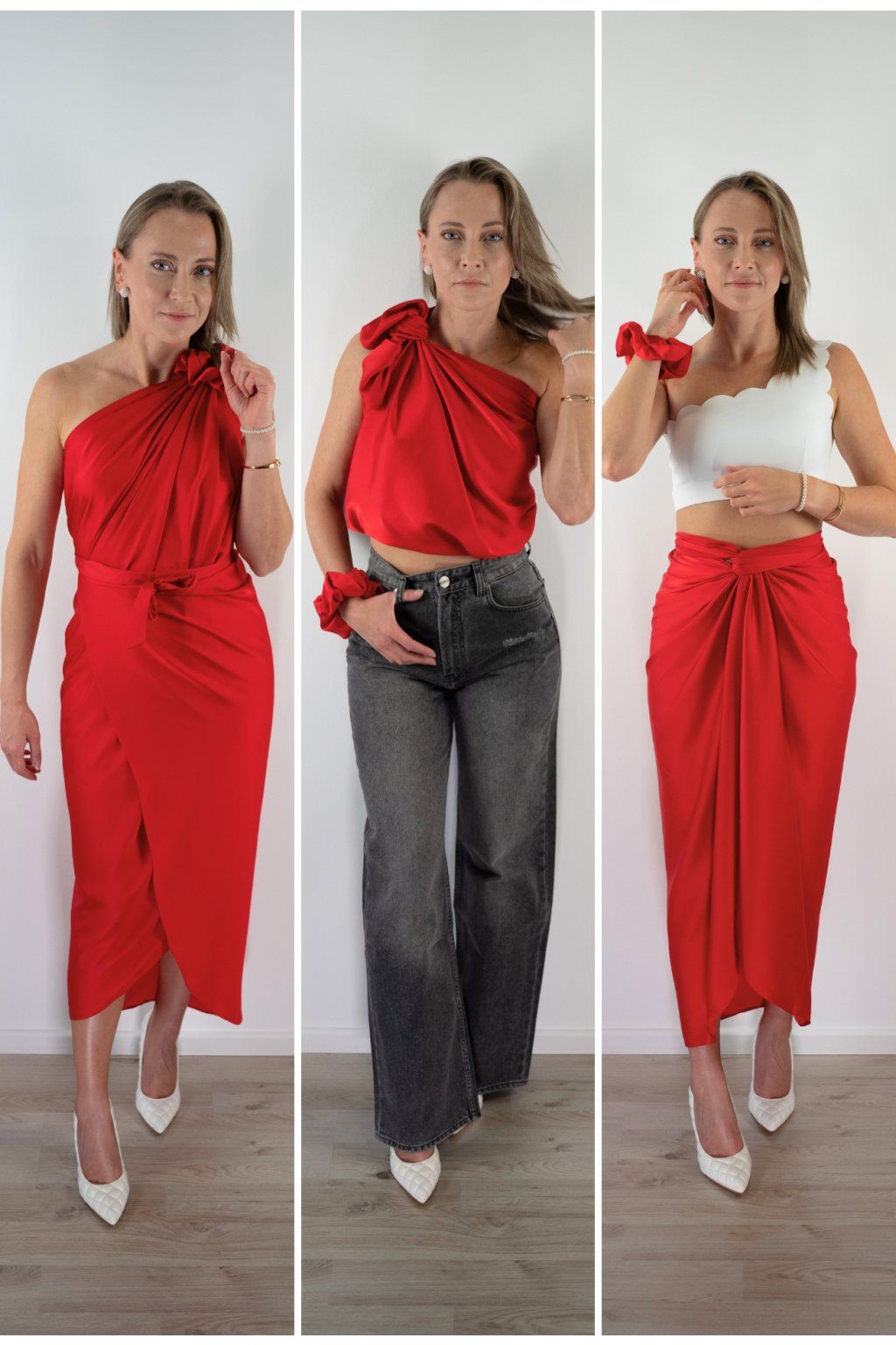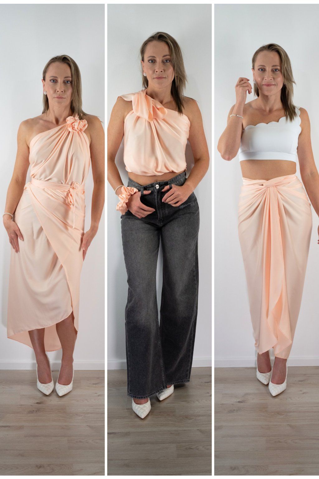 Šaty přes jedno rameno, zavinovací top a přehoz — tyhle 3 zvládneš za 2 minuty. Žádná zkušenost potřeba.